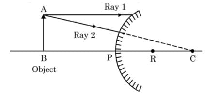 (c) Draw a ray diagram to show the type of image formed when an object is placed between pole and focus of a concave mirror.
