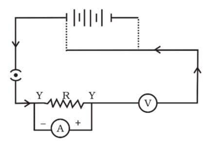 A child has drawn the electric circuit to study Ohm’s law as shown in figure. His teacher said that the circuit diagram needs correction. Study the circuit diagram and redraw it after making all corrections.