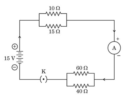 (c) Potential difference across the parallel combination of 10 Ω and 15 Ω resistors