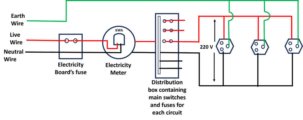 Figure shown above gives a schematic diagram of one of the common domestic circuits. In our homes, we receive supply of AC (alternating current) electric power through a main supply, either supported through overhead electric poles or by underground cables. One of the wires in this supply, usually with red insulation cover, is called live wire (or positive). Another wire, with black insulation, is called neutral wire (or negative). In our country, the potential difference between the two is 220 V. These wires supply electricity to separate circuits within the house. Often, two separate circuits are used, one of 15 A current rating for appliances with higher power ratings such as geysers, air coolers, etc. The other circuit is of 5 A current rating for bulbs, fans, etc. The earth wire, which has insulation of green colour, is usually connected to a metal plate deep in the earth near the house. This is used as a safety measure, especially for those appliances that have a metallic body, for example, electric press, toaster, table fan, refrigerator, etc. (a) Name two safety measures commonly used in domestic electric circuits. (1) (b) What is a short circuit ? (1) (c) (i) What is alternating Current (AC) ? (1) (ii) Most power stations constructed these days produce AC ? Write one advantage of AC over DC? (1) OR (c) An electric oven of 2 kW power rating is operated in a domestic electric circuit (220 V) that has a current rating of 5 A. What result do you expect? Explain. (2) |