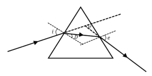 After tracing the path of a ray of light through a glass prism a student marked the angle of incidence (∠i), angle of refraction (∠r), angle of emergence (∠e) and the angle of deviation (∠D) as shown in the diagram. The correctly marked angles are: